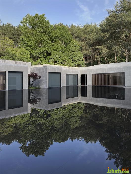 安卓梅達(dá)(Andromeda),取意天上的仙女星座,朦朧而美好,遙遠(yuǎn)而明媚。酒店依偎著如拙樸之翠的太平湖,在松林的掩映下儼然物外之境。遠(yuǎn)遠(yuǎn)看去,只一眼便動(dòng)了心弦,被那份清水混凝土與幾何結(jié)構(gòu)所呈現(xiàn)出的柔美撩撥著走近,種進(jìn)眸子里的卻是山水翠色,倏然恍惚了來意。