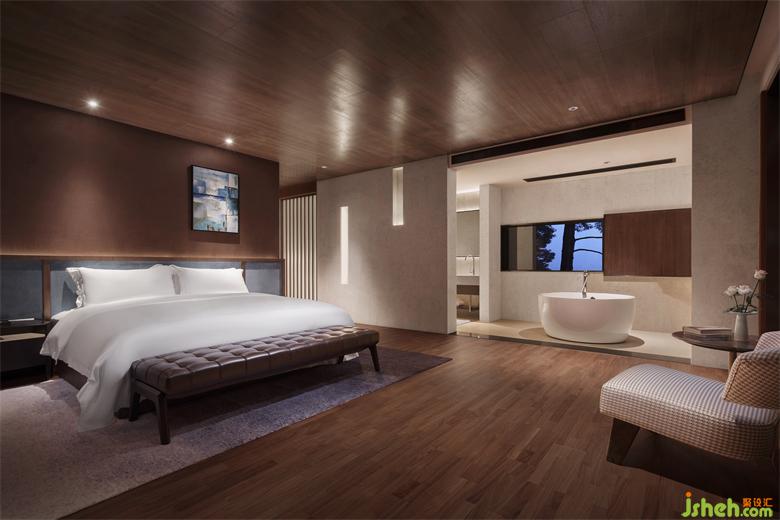 酒店大堂被小心地隱沒在密林中,一路的柳暗花明使check in多了流程外的驚喜體驗(yàn)。酒店設(shè)計(jì)空間的靈動(dòng)交錯(cuò)讓建筑成為光的工具,太平湖的美景也就透過縫隙若隱若現(xiàn)地跳動(dòng)在眼前。