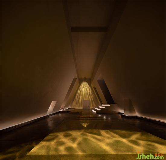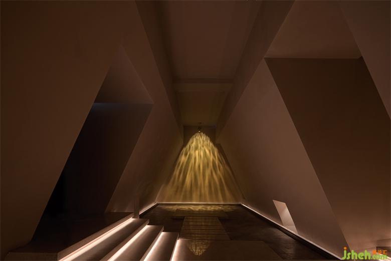 推開O.GO SPA的大門,我們需要向下走4到5級的臺(tái)階,進(jìn)入到下沉式空間,可以看到的是類似于金字塔一樣的造型,站在一樓SPA設(shè)計(jì)大廳中央仿佛來到了異世界,與現(xiàn)實(shí)世界相隔的那一面墻在這一瞬間似乎也不再重要。