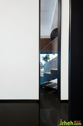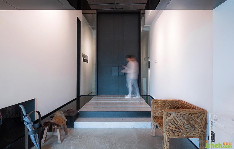 3.6米高的黑漆大門,設(shè)計(jì)公司在型制上呼應(yīng)了中國(guó)傳統(tǒng)大宅的門扉尺度,彰顯出東方獨(dú)有的疏落大氣,同時(shí)又極為克制地運(yùn)用西方現(xiàn)代的設(shè)計(jì)手法,線條簡(jiǎn)練,“不著一字,盡顯風(fēng)流”矣。設(shè)計(jì)公司從門側(cè)通透的玻璃望向門內(nèi),自然天光從不同量體的矩形窗篩灑而入,偶見人影走動(dòng),卻又遮住幾許,讓人禁不住生出好奇之感。