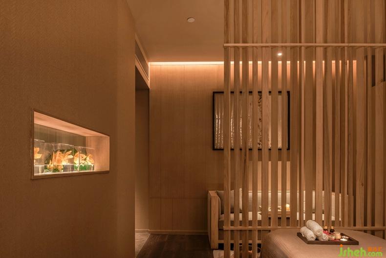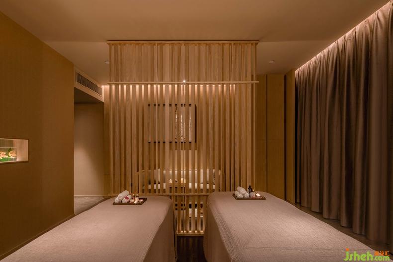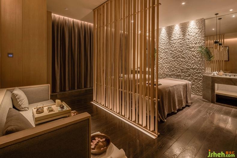 在功能上SPA房分為了單人房與雙人房,雙人房用木屏風(fēng)將足療區(qū)分隔出來,置于屏風(fēng)之外,形成理療、休息的功能分區(qū),既保證了空間的獨立與私密性,又不破壞整體的空間氛圍。