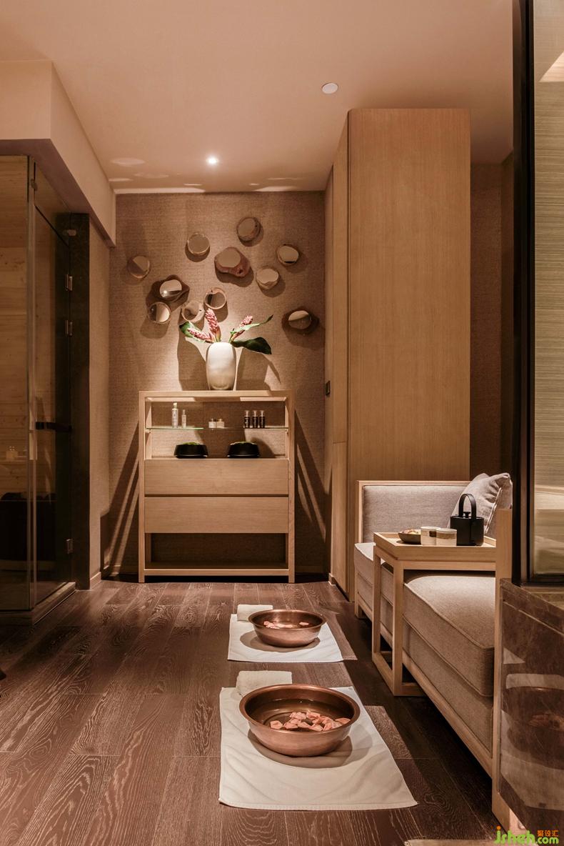 特色房增加了花瓣浴缸與蒸房,更能俯瞰高樓林立的都市景觀,40層的高度能清晰的看到都市萬象,設(shè)計師在角度最好的位置設(shè)置了觀景臺,整面的玻璃窗,將視野最大化,使人從環(huán)境中跳脫出來,在此品一杯美酒,靜觀夜幕下都市的另一番面貌,感受SPA帶來的這一奇妙之旅。深圳設(shè)計公司