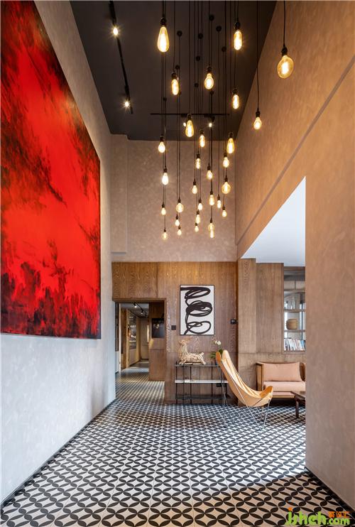 乘電梯至6層,再步行到樓頂是餐廳與健身房??臻g環(huán)境的設(shè)計,要滿足人身心靈的需求,7層前廳的藝術(shù)廊,紅與黑巨幅藝術(shù)畫、數(shù)十盞鎢絲燈、一顆綠植都蘊藏著深層的情感內(nèi)涵,為我們構(gòu)建出豐富的內(nèi)在世界。