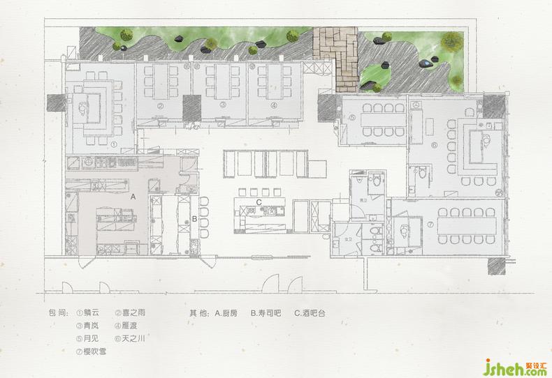 日料餐廳設(shè)計(jì)心靈重新回歸到自然當(dāng)中,與自然交談,享受它帶來的撫慰與安寧。