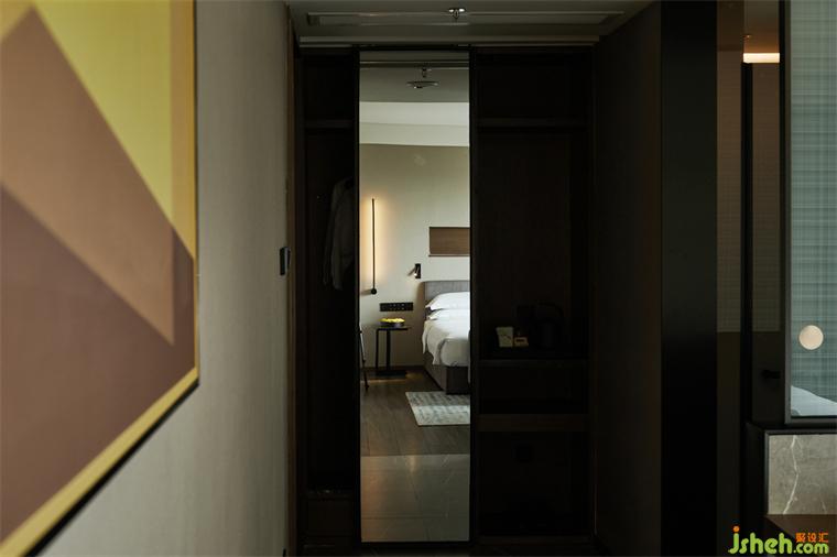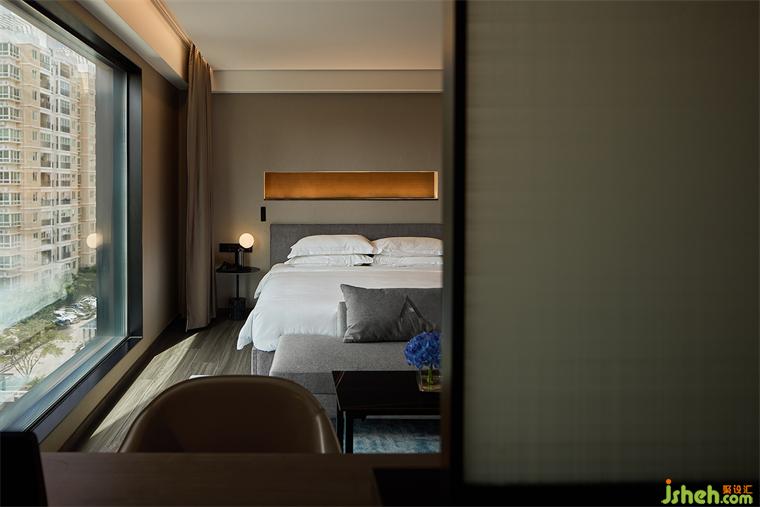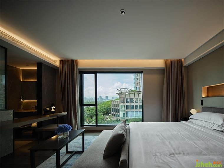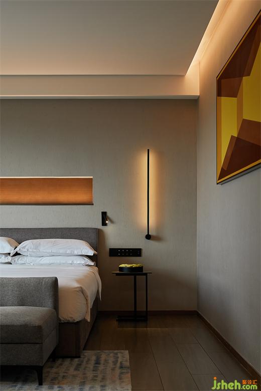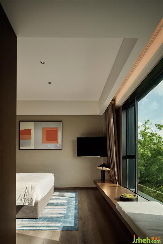 落地窗的位置設計了一個長長的休息凳,當人慵懶地躺在這時,一眼望去的愜意感,三亞小酒店設計讓身體的每個細胞都變得松弛下來,沉醉于繁華都市的綠洲之中。