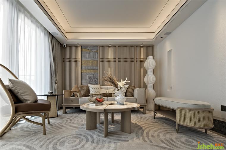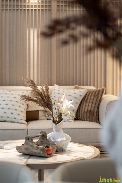 在最樸實(shí)無華的空間里,容納淺色及天然材質(zhì)的沙發(fā), 彰顯自然、安靜、禪意的東方美學(xué)。