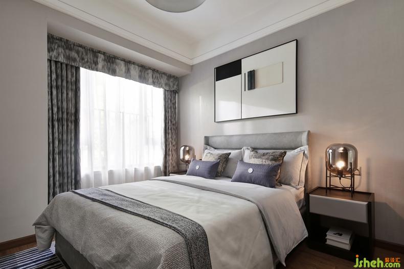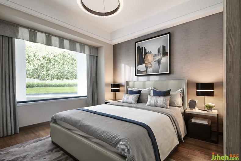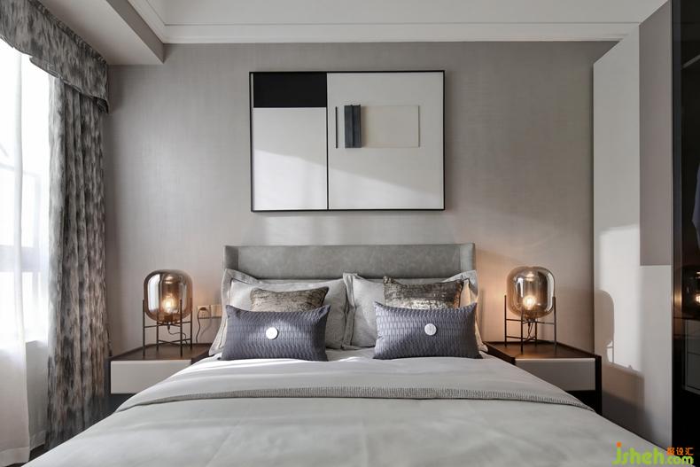 臥室中適度的家飾突顯出空間的焦點(diǎn),材質(zhì)選用灰與灰藍(lán)的布藝作為基調(diào),再輔以綠植點(diǎn)綴處理,空間的機(jī)理與光源產(chǎn)生層次感,展現(xiàn)出光與影比例的敏銳度,也為空間營(yíng)造出氛圍。