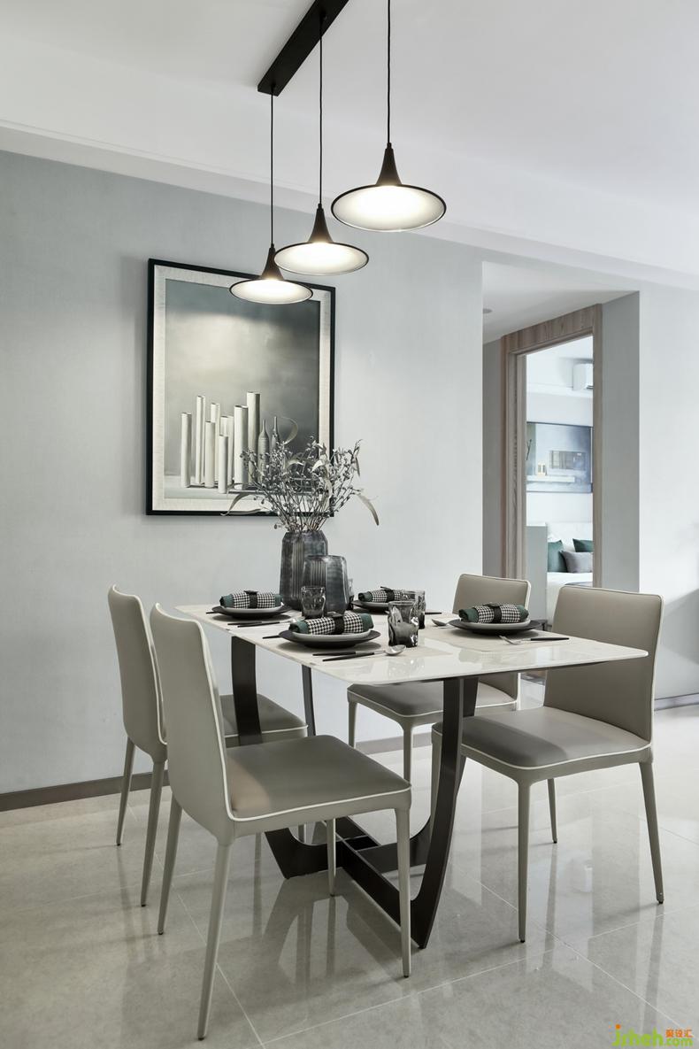餐廳中央吊一盞特色的吊燈,營(yíng)造出柔和燈光效果,各類飾品亦為這個(gè)空間注入個(gè)性化情趣,兼有客廳大理石地面干凈大氣的統(tǒng)一布局,使空間通透感和層次感更明顯。綠色象征著生命代表著健康,熱愛(ài)美食的主人可以充分享受這一空間。