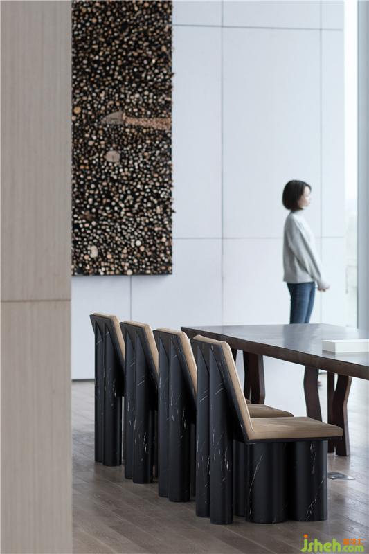 開平有碉樓,乃被列為世界非物質(zhì)文化遺產(chǎn)。以碉樓的柱式作為座椅腿部,令來者閑坐觀景,亦能心有聯(lián)想,可知身處何地。材質(zhì)的對比、色彩的融合、在地性與實用性的疊加,設(shè)計師因傳遞精神而內(nèi)觀形式。