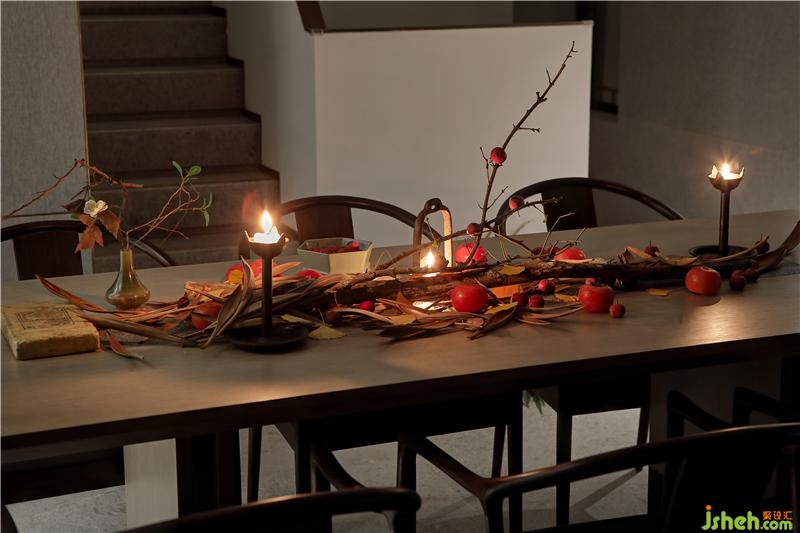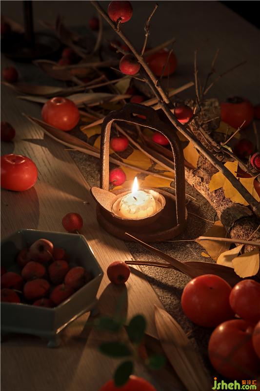 以不同的歲月肌理,迸撞出時光的交響樂曲。擺上一盆宛如小巧燈籠的圓柿盆飾,