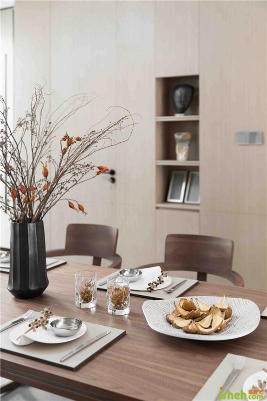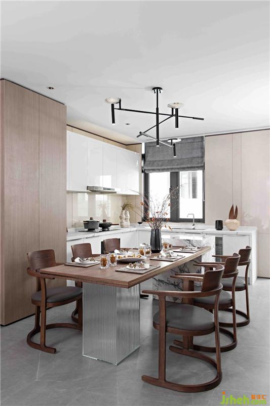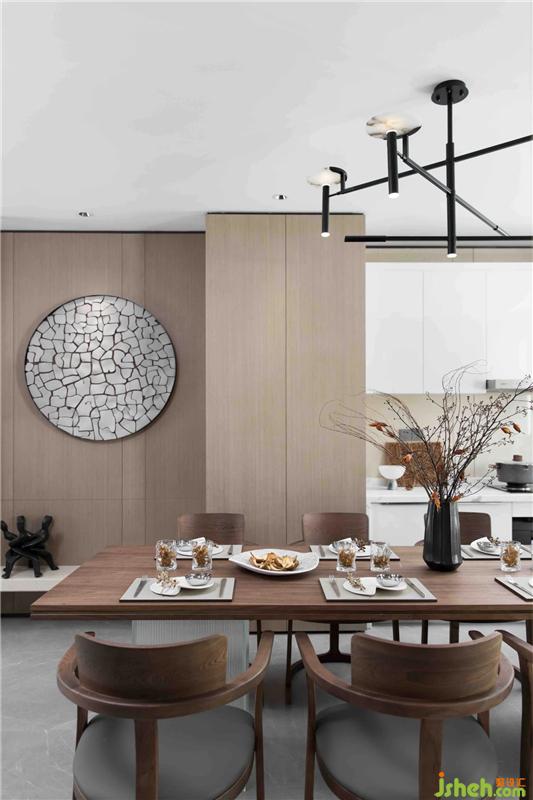 “取其神而忘其形”,餐廳空間提煉東方元素,從而打造出更適合現(xiàn)代人的中式風(fēng)格。它們在彰顯濃濃的古典韻味之余,又摒棄了繁復(fù)而多余的設(shè)計,加入一絲精致的輕奢元素進行調(diào)和,身處其中盡享優(yōu)雅。
