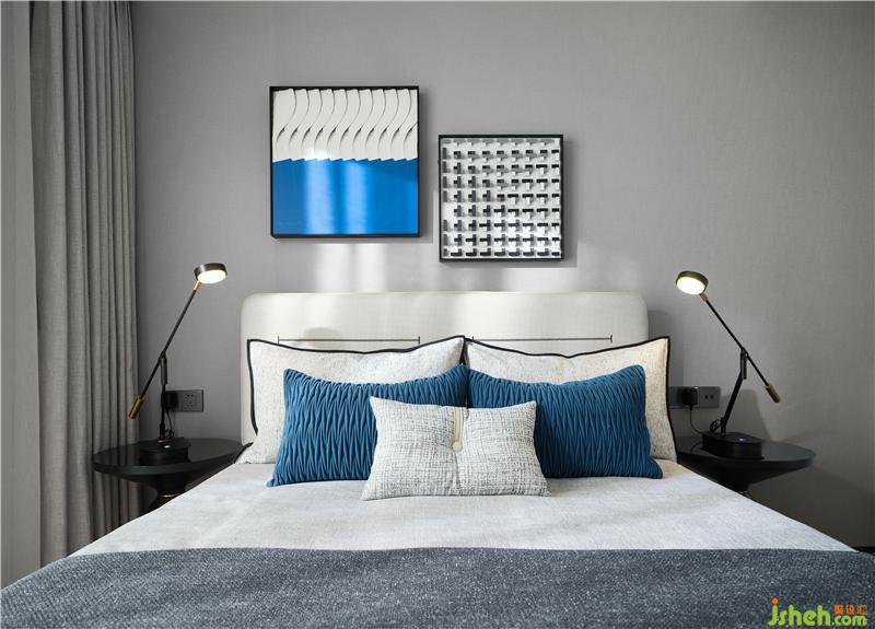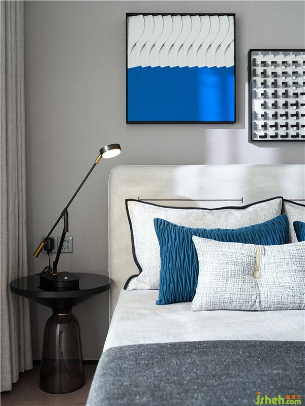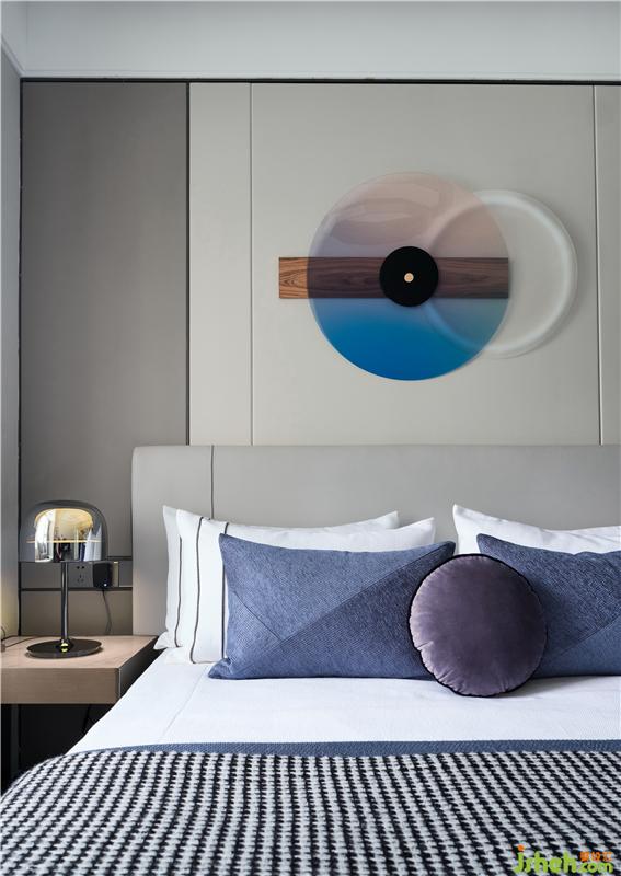 床頭裝飾畫曲折的弧度宛如海浪一般,充滿了自然舒適的氣質。