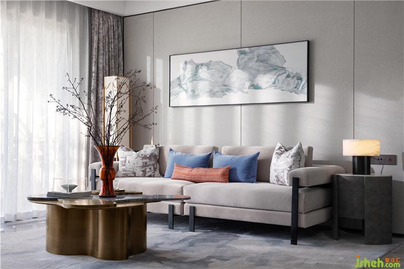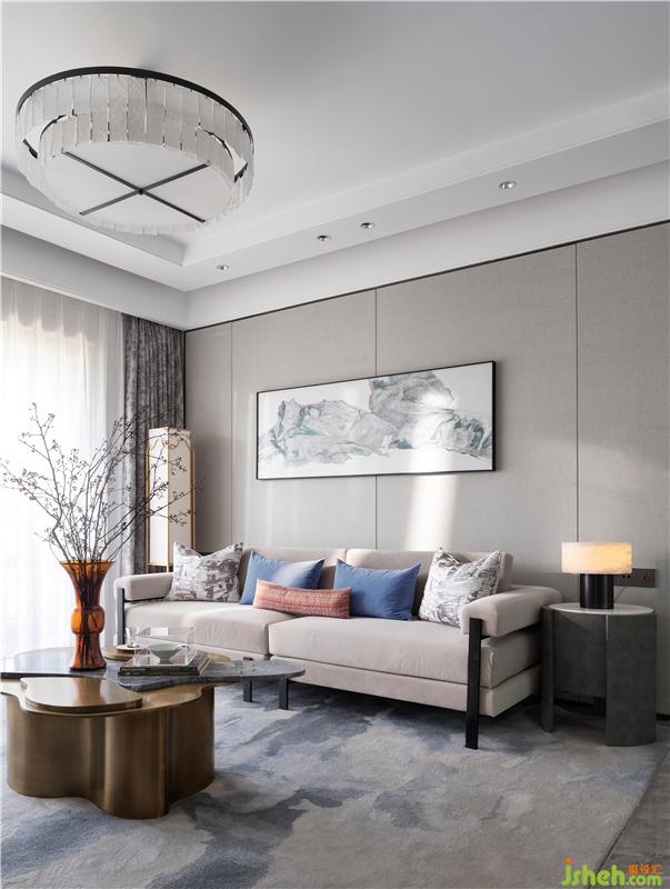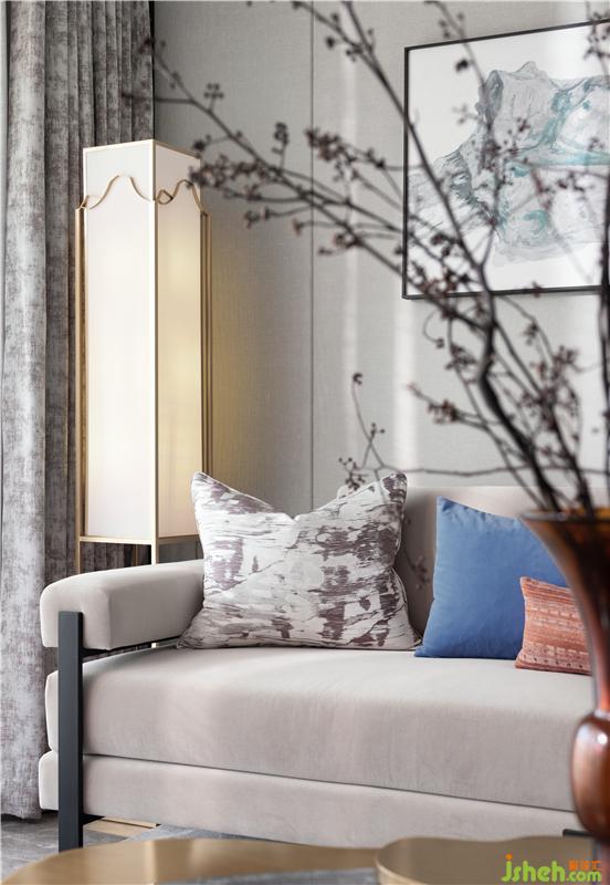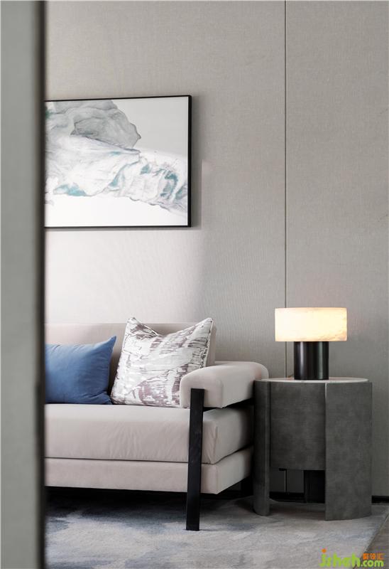 沙發(fā)色彩內(nèi)斂柔和,抱枕又為空間中增添了一抹動人的色彩,于深淺之間,增添視覺層次感。