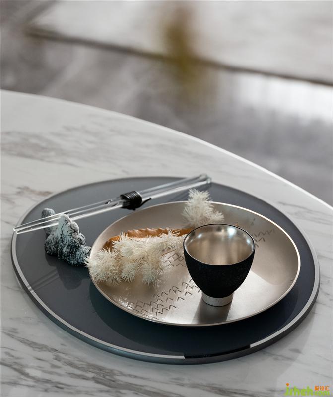 金屬桌泛著令人心動的光澤,美感天成,使氣質(zhì)端莊的空間也增添了些許靈動之意,不僅豐富了空間結(jié)構(gòu),也提升了空間質(zhì)感。