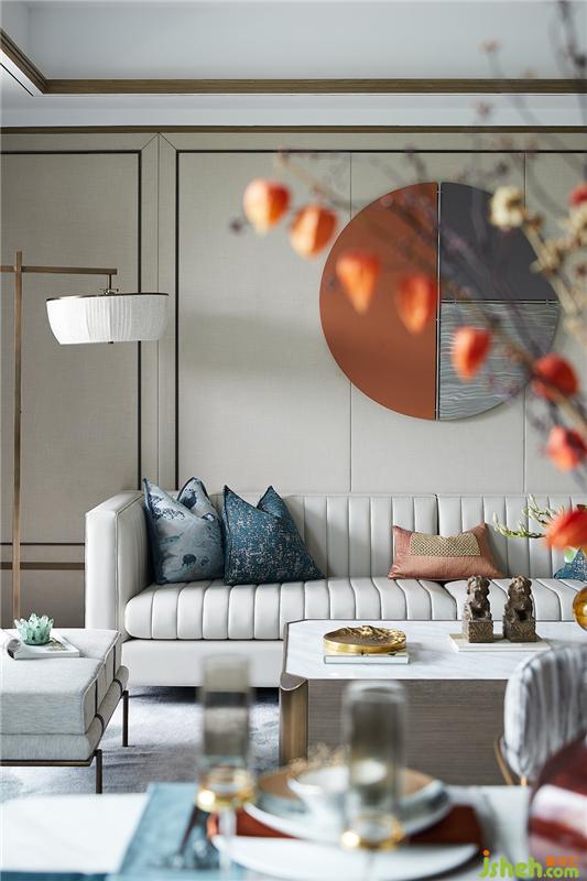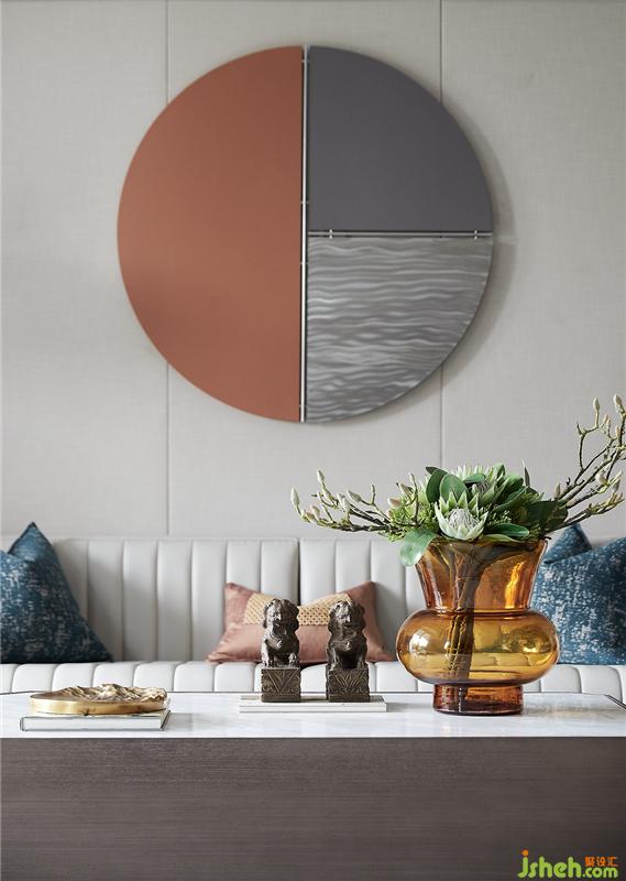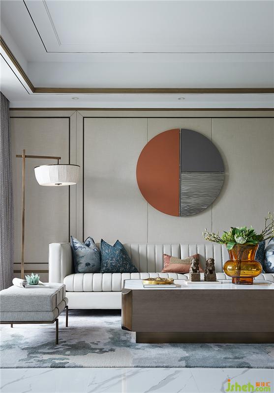 背景墻上裝飾畫鮮明富有活力的橙色與低調斂靜的灰色對撞相迎,極富張力之美??季康钠べ|沙發(fā)簡單精致,抱枕蓬松而柔軟,細膩地表達出對生活品質的追求,生動的展現了一個家該有的舒適與溫馨。