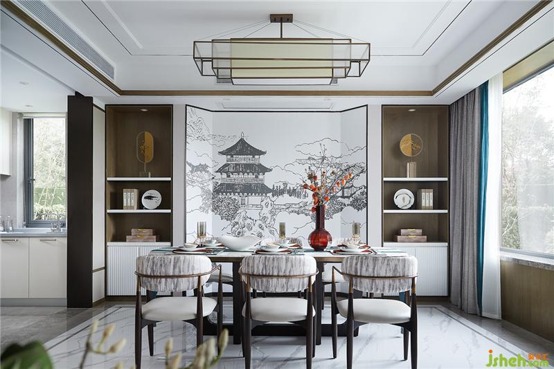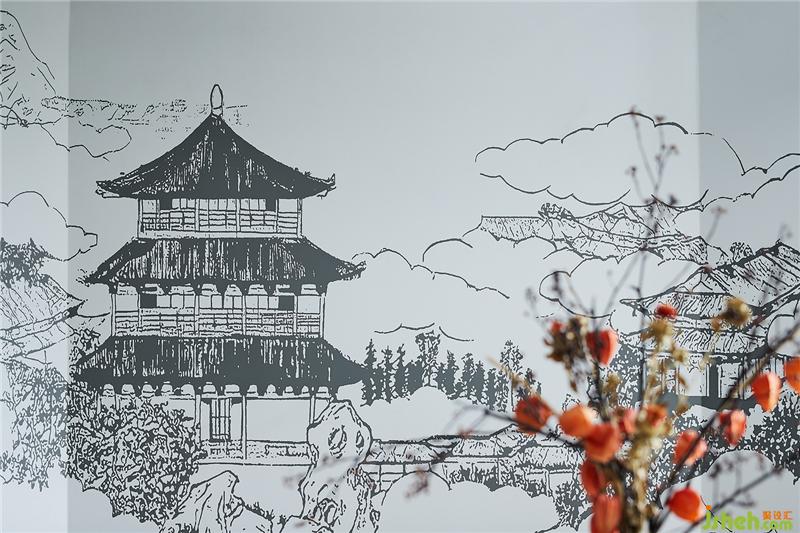 背景墻面的園林畫作大氣而富有內涵,將人文氣息呼之欲出,增強了空間的立體感與細節(jié)感,讓畫不再只是一幅畫,而是整個空間氛圍中的一部分。