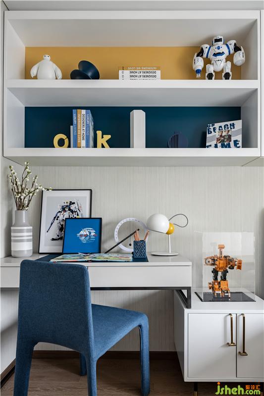 變形金剛和機器人也承載著兒時的記憶,讓空間顯得不再沉悶。多元素的結(jié)合,也讓兒童房多了一分天真的活潑與趣意。