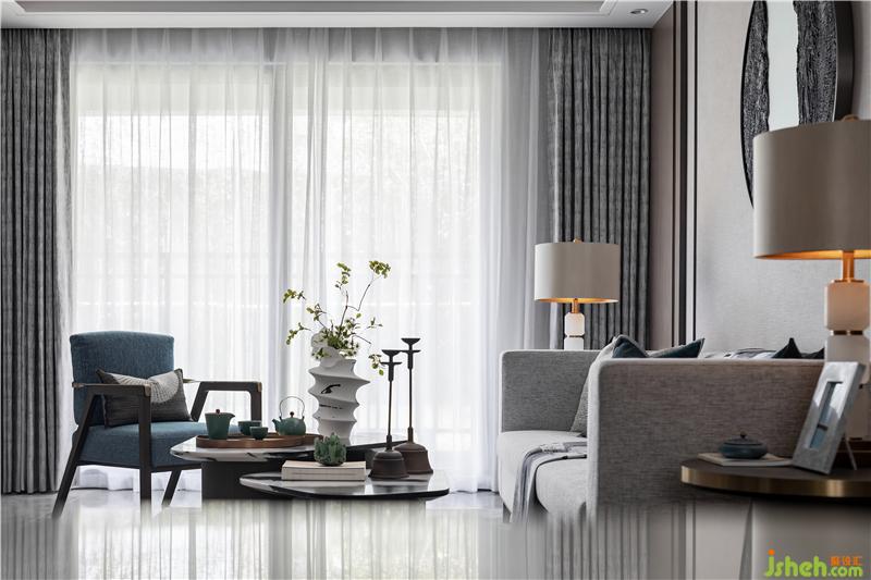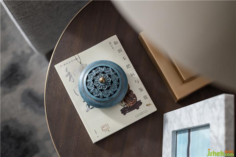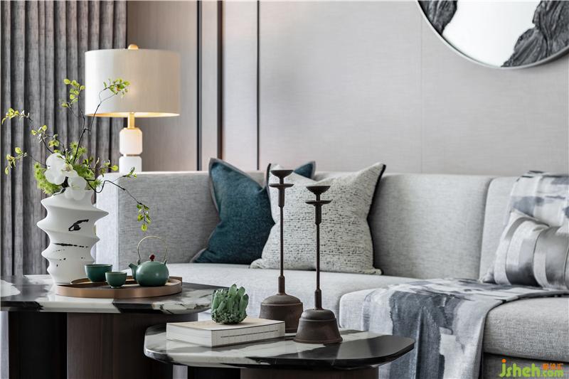 長(zhǎng)沙樣板房設(shè)計(jì)客廳氛圍淡雅而不清寂,儒雅的東方美感,意境空靈,碧色茶盞、湛藍(lán)香爐、生機(jī)綠植、皆于含蓄內(nèi)斂中書寫生活的溫度,并賦予了空間細(xì)膩的優(yōu)雅。