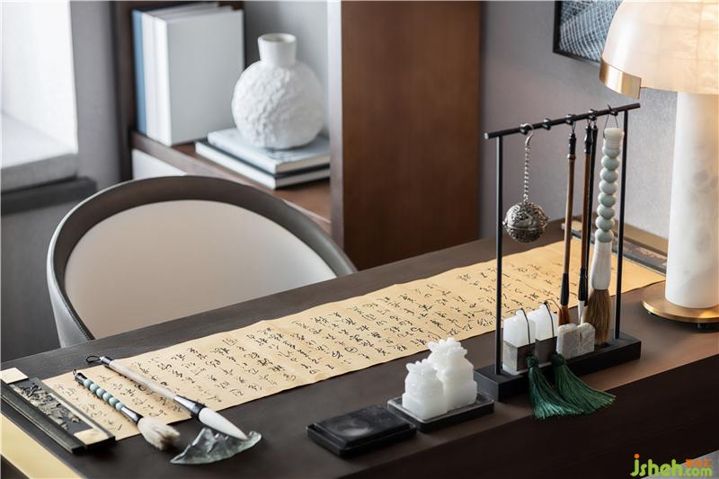 以寫意筆觸,回應(yīng)獨(dú)屬于東方清韻的人文臻境,無(wú)需濃墨重彩,只余素雅之姿,豐富書房層次感,詮釋東方文化的精粹,并將略顯沉重的傳統(tǒng)元素,以更加優(yōu)雅輕盈之態(tài)呈現(xiàn)于空間之中