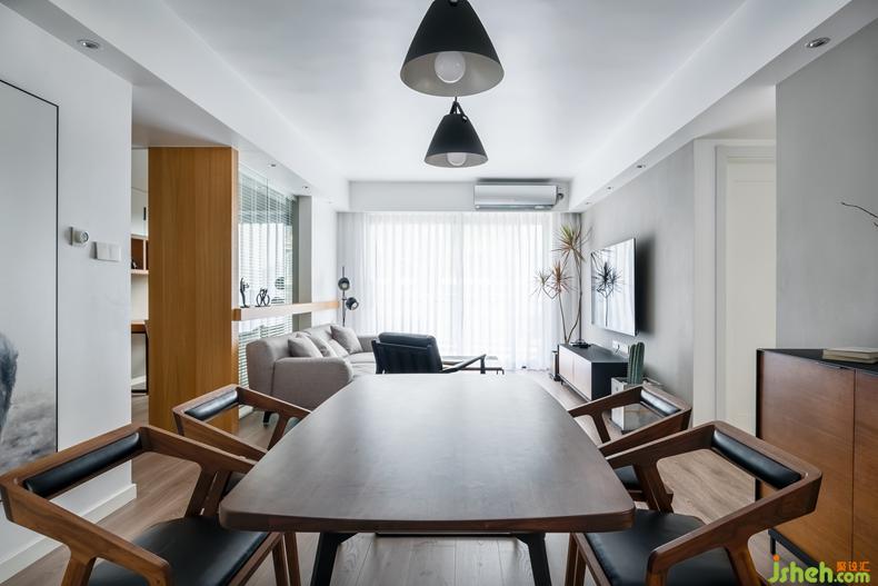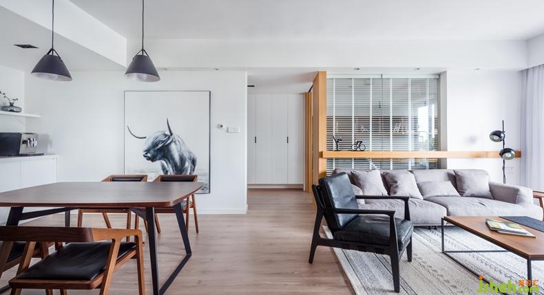 本案以建筑手法構(gòu)建室內(nèi)空間,以黑白木為基調(diào),大面積留白,黑色以線條形式出現(xiàn),勾勒空間輪廓,設(shè)計(jì)公司再以木質(zhì)提升空間的層次布局,用簡(jiǎn)練的設(shè)計(jì)語(yǔ)言,精簡(jiǎn)雅致的軟裝搭配來(lái)賦予空間靈魂。