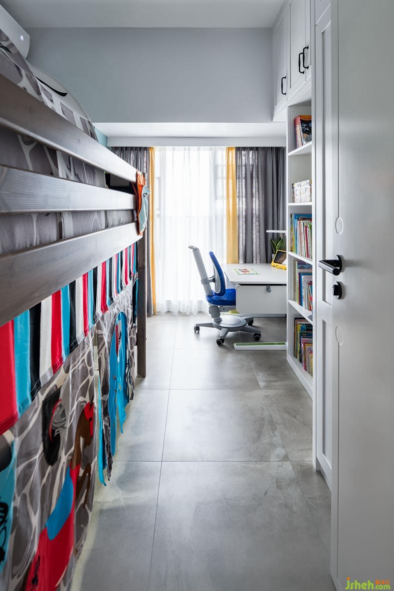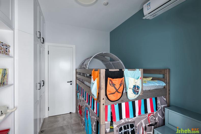 小孩房的空間較小,設(shè)計(jì)的過(guò)程中我們向空中要空間,把床抬高,床下的位置仿佛就是多出來(lái)的一個(gè)空間,如童話城堡般夢(mèng)幻的寶寶床下,載著毛茸茸、栩栩如生小伙伴的陪伴,給孩子一個(gè)最美麗的童年。