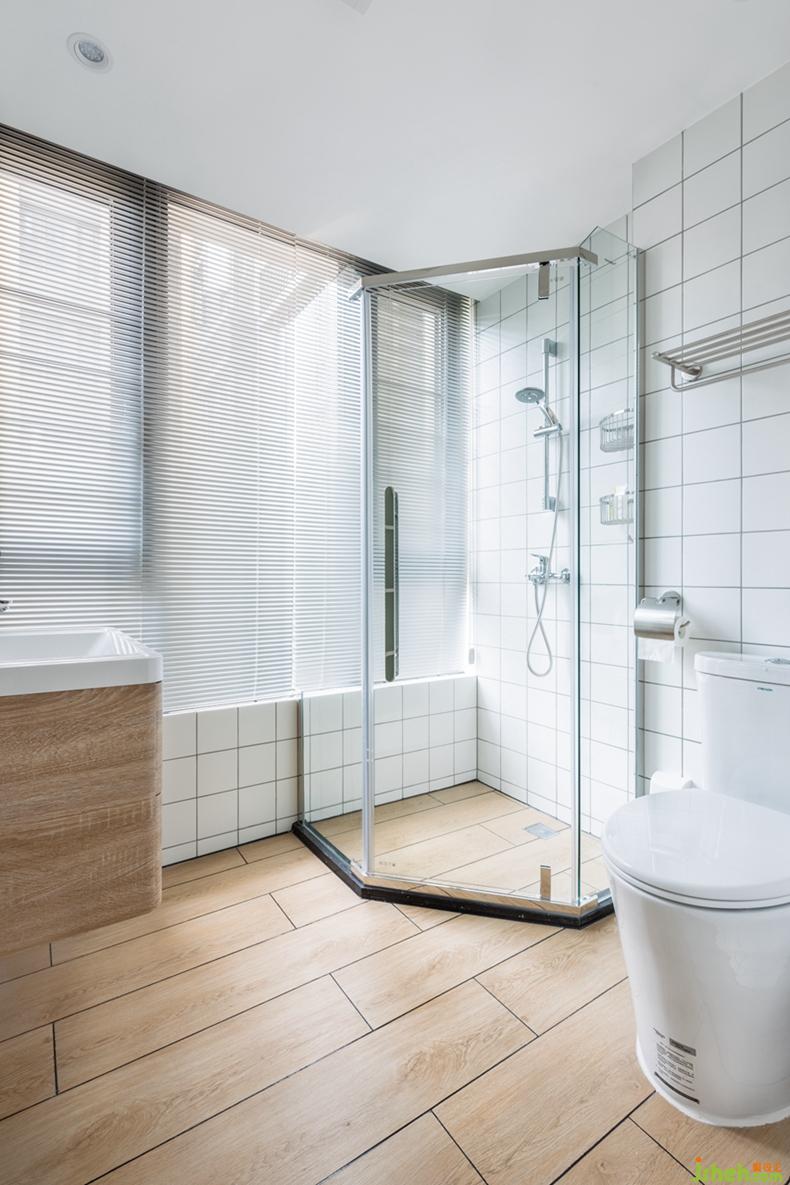 衛(wèi)生間同樣采用明快的小白磚鋪貼,地面搭配木紋地磚,溫馨舒適。室內(nèi)設(shè)計師
