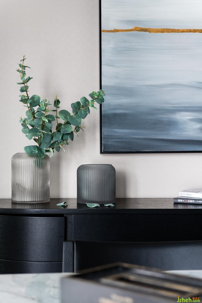 空間色彩能夠在第一時間影響人的情緒體驗,我們在墻面,地面,家具,掛畫上,利用一系列低飽和度的色彩層層推進,結(jié)合當(dāng)代人的審美特點,綜合考量了色彩的藝術(shù)特質(zhì)和感受體驗。室內(nèi)設(shè)計師
