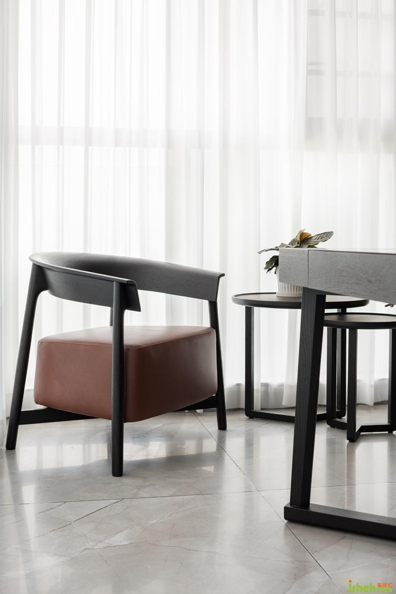 行走在城市之中,讀書可以給人帶來片刻的安寧。書房與客廳同時作為一個獨立的空間,以玻璃推拉門作為隔斷,緩和了兩個空間之間的界限,也使得整個空間更加寬敞通透且明亮。室內(nèi)設(shè)計師