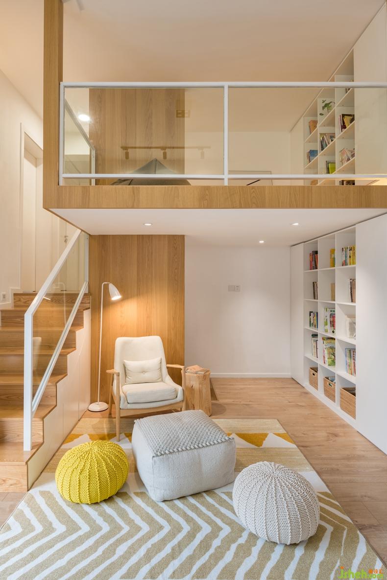 我們利用客廳層高的優(yōu)勢打造了一個簡單而舒適的小閣樓,最重要的是趴在閣樓的軟墊上,看著舊舊的,沙沙的電影畫質(zhì),仿佛回到了那個熟悉的年代。