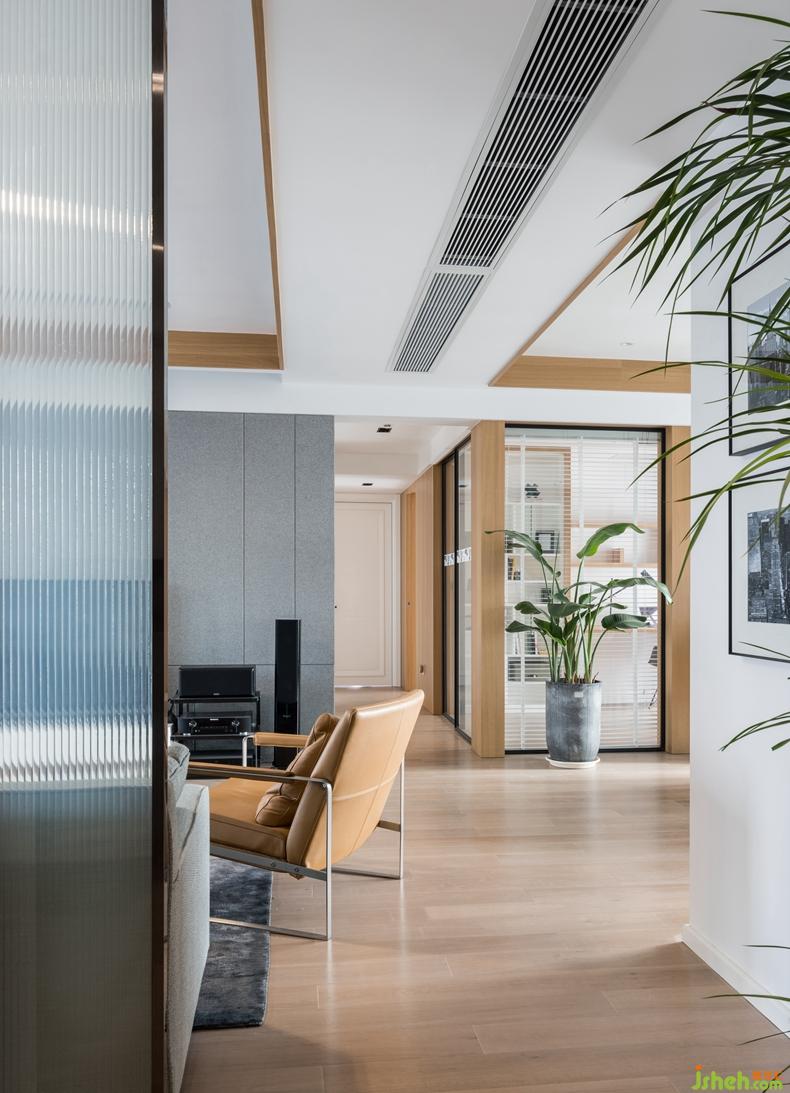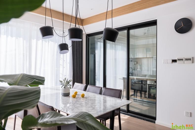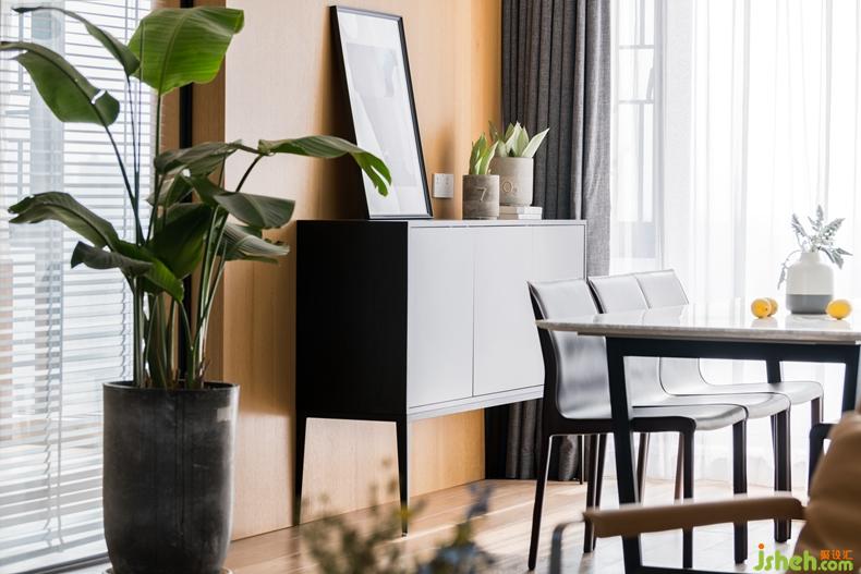 書房采用的黑框玻璃門的設計主要是分散過道空間的視角,在視覺上起到通透、開闊的效果。