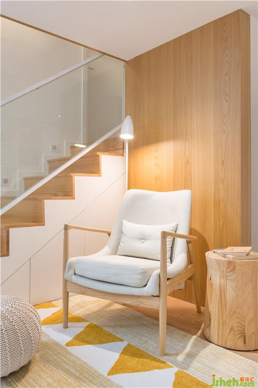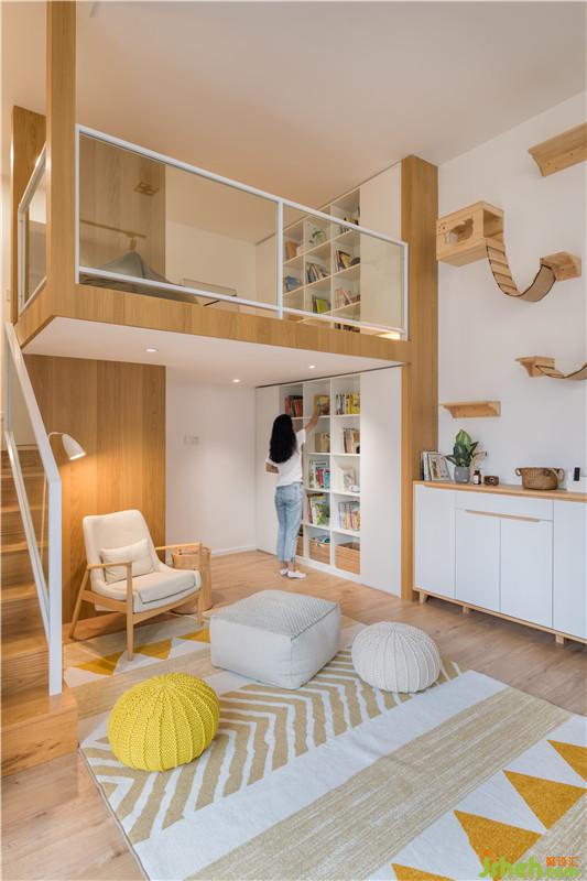 利用客廳層高的優(yōu)勢打造了一個簡單而舒適的小閣樓,最重要的是趴在閣樓的軟墊上,看著舊舊的,沙沙的電影畫質(zhì),仿佛回到了那個熟悉的年代。