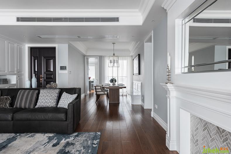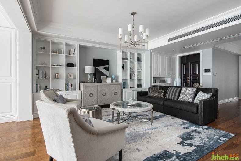 整體采用大地色色調(diào),色彩統(tǒng)一卻富有層次,簡化的美式家具中隱約散發(fā)出現(xiàn)代的氣息。大而舒適的沙發(fā)/墻面上既可展示又可收納的置物板/壁爐,無不透露出美式生活的氣息。