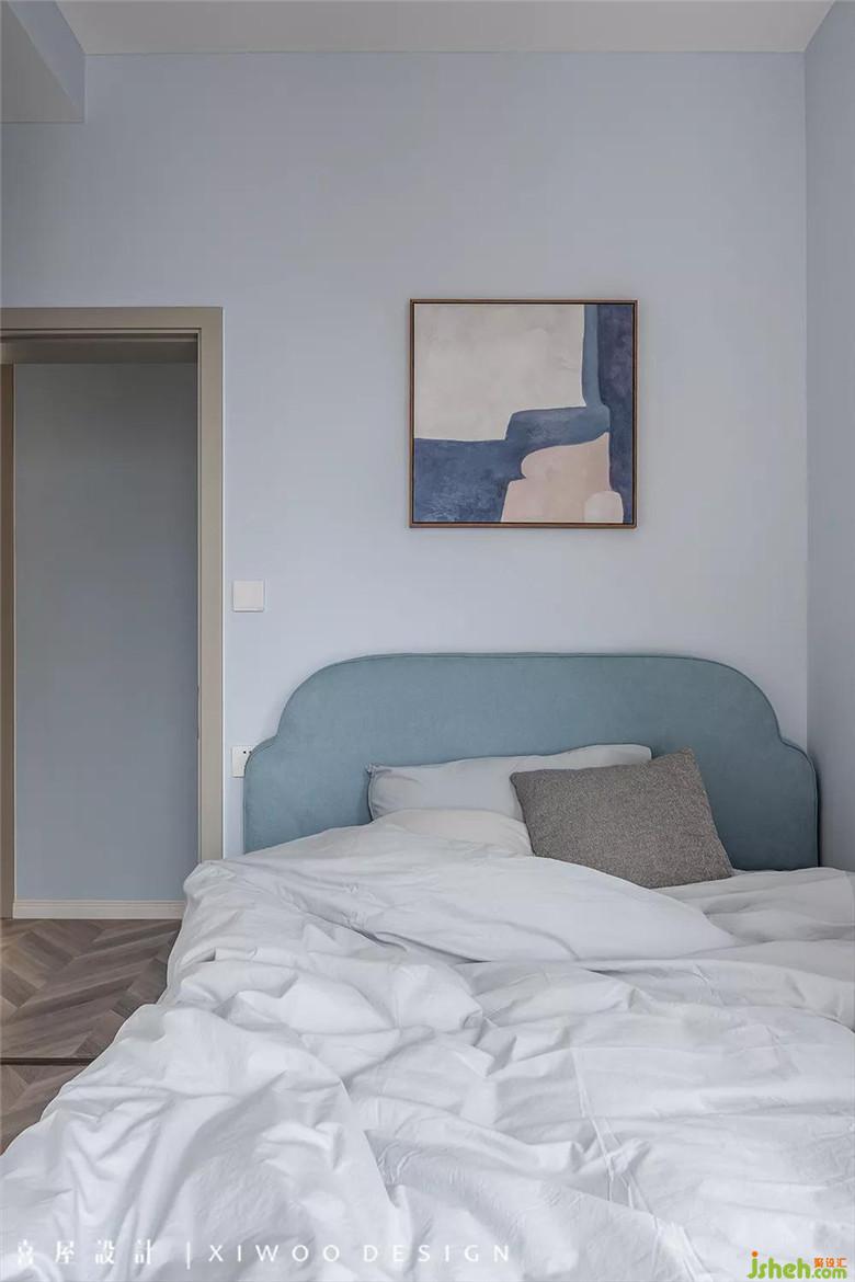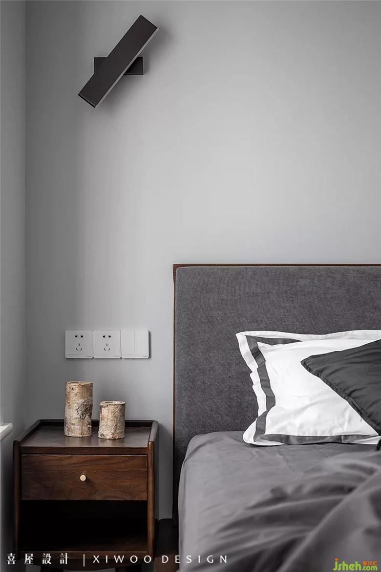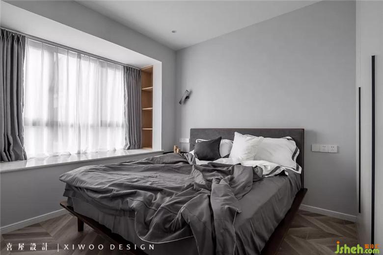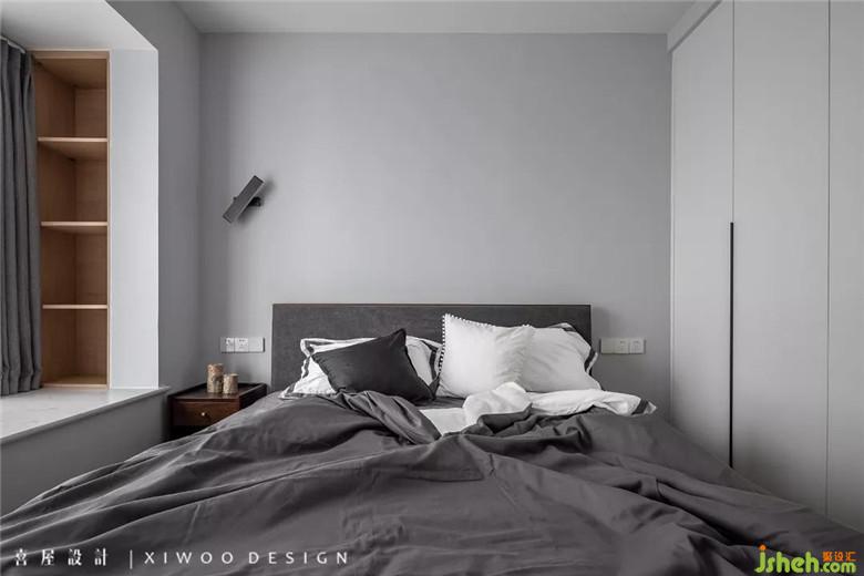 主臥在低飽和度的色調(diào)和床上用品,散發(fā)著簡約下的低調(diào),通過多維度的空間設(shè)計,將意境體驗與生活功能巧妙結(jié)合。在熱鬧的靜寂中,悄然融入了灰與白之間,游離在光與影之間,在靜謐中摻雜著曖昧,曖昧中摻雜著放松,樸素靜美,耐人尋味。