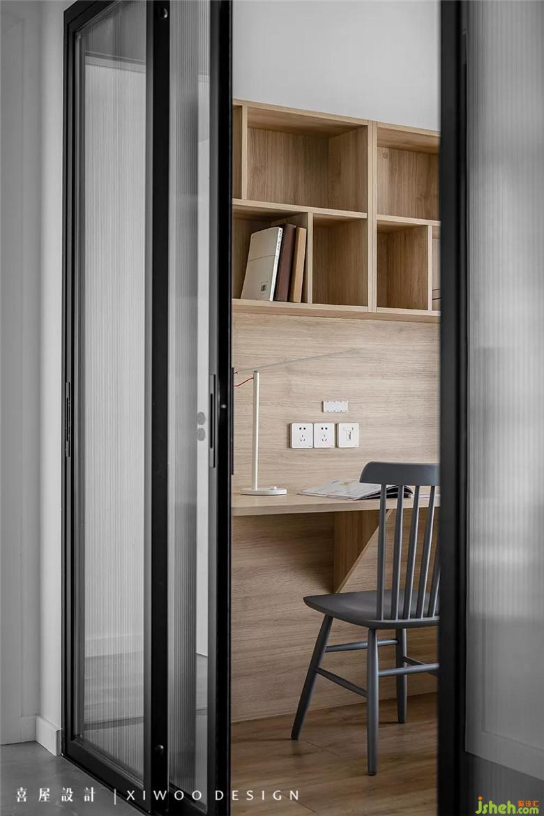 擴大了門洞后做成長虹玻璃推拉門,增加男孩房整個空間的采光通風(fēng),使“灰空間”的存在感更強烈。