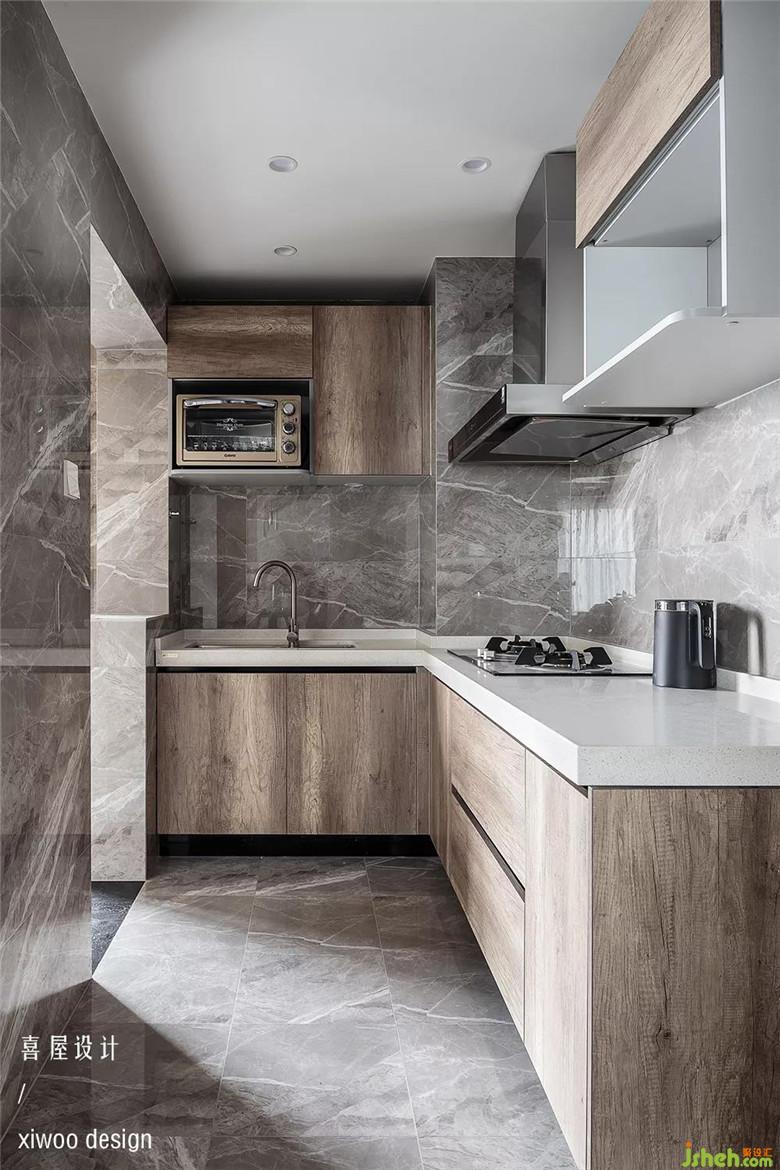 櫥柜門板選擇做舊木紋與墻地呼應(yīng),質(zhì)感讓音色更加美妙