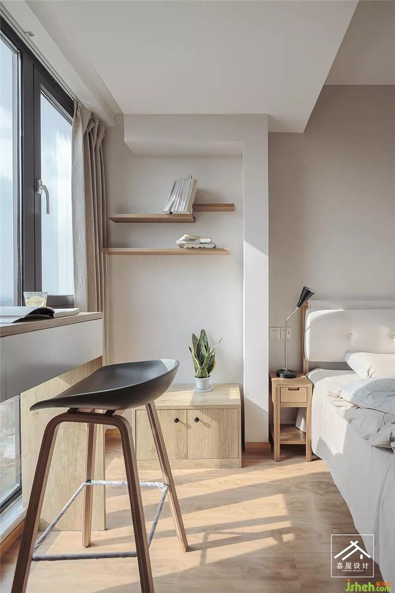 改造后的次臥,從客廳進入,化解原始戶型臥室門正對浴室柜鏡子的尷尬問題。