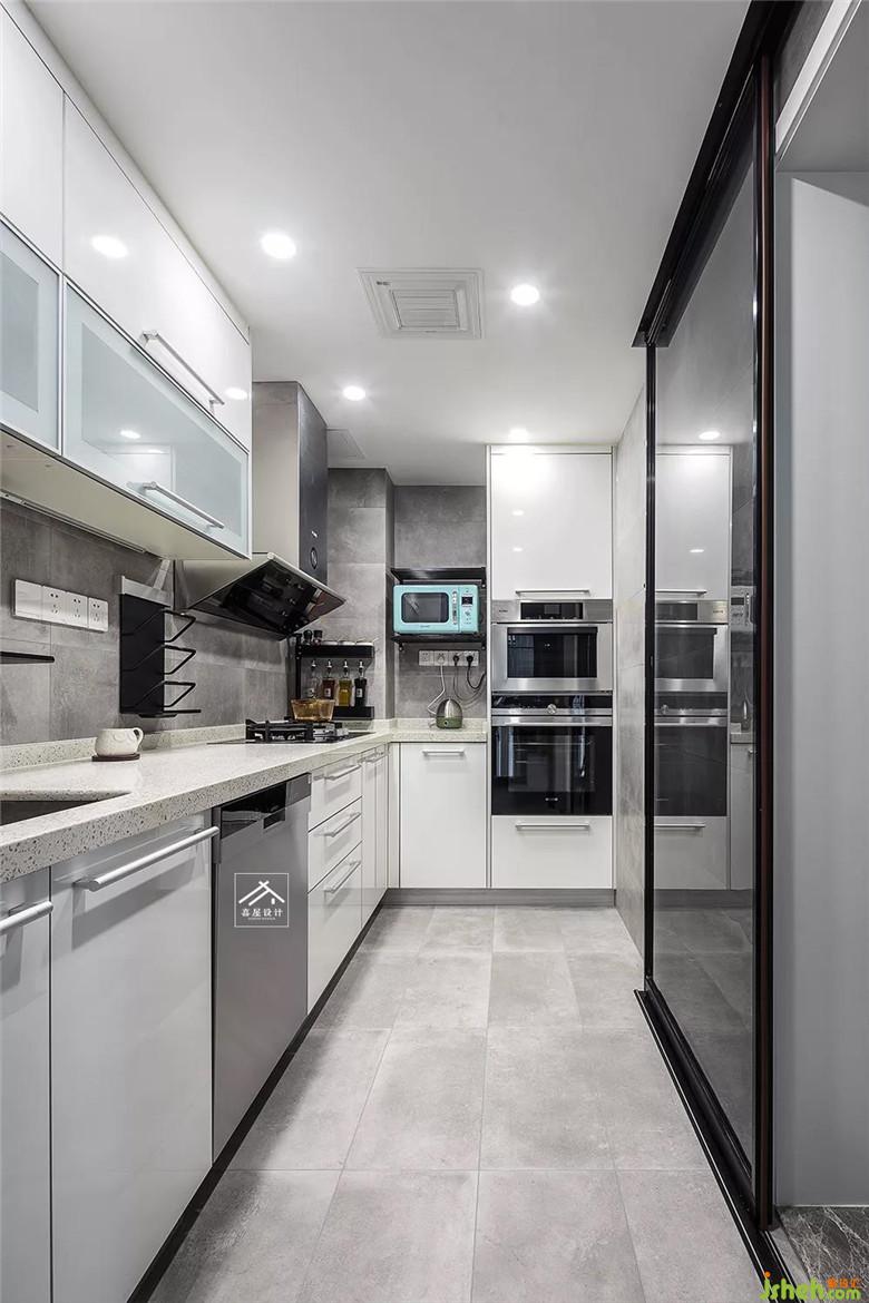 地面用了全部爵士白啞光磚,增加餐廳和客廳的采光。
