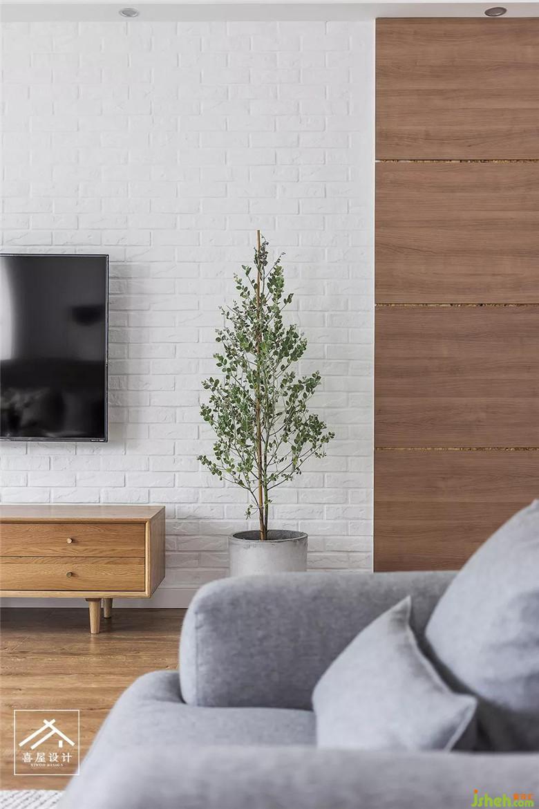 電視墻做了文化石,白與浮雕般的格紋感素雅了整個(gè)空間的調(diào)性。