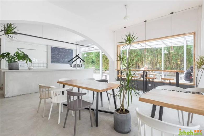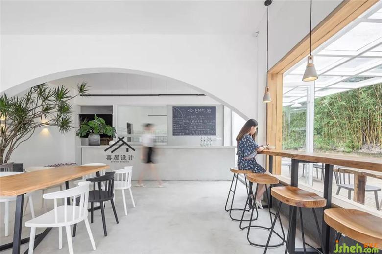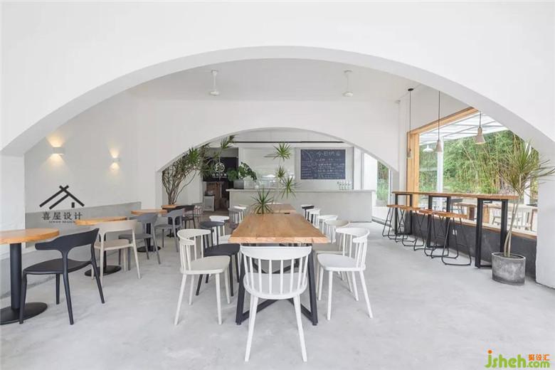 原店是一家荷塘月色臨街的鋪面,以前這里是賣魚的,內(nèi)部裝修比較雜亂,于是我們把室內(nèi)地面的磚敲掉,做了水泥地坪,節(jié)約開支也方便。原室內(nèi)兩個(gè)橫梁自然的做了拱形門洞。