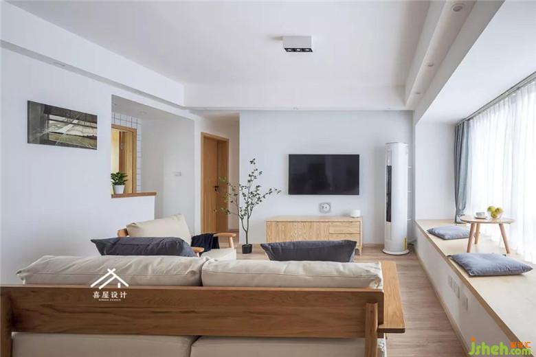 淺湖灰與木色匯聚到客廳的一剎那,時(shí)間仿佛慢了許多,就多了容納幸福的體量。我們把飄窗臺做成了木板的在上面看看書小憩都會非常舒服。