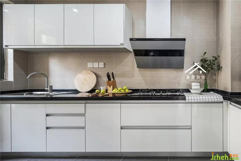 廚房以干凈整潔好收納為主,室內(nèi)設(shè)計(jì)師做了隱形拉手,使得整體觀感更加協(xié)調(diào)。