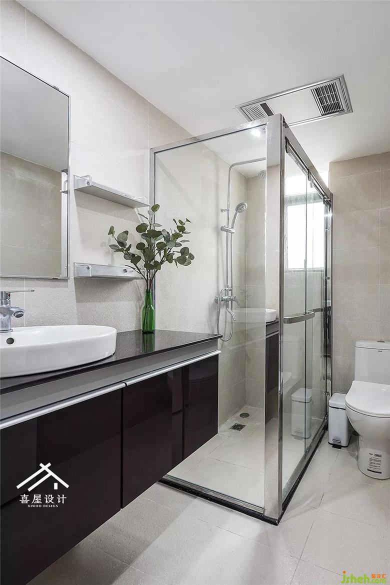 3.7平米的衛(wèi)生間,剛好能放下淋浴房和一個(gè)0.9米的洗面盆,恰到好處。