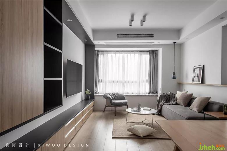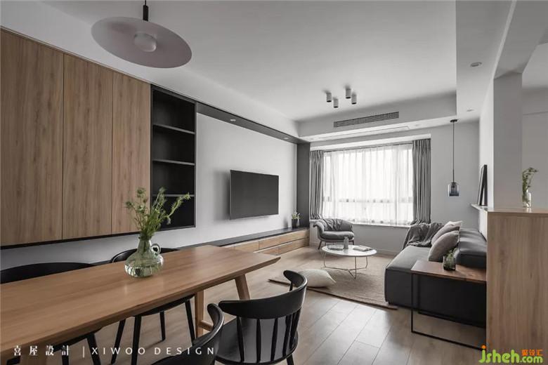 在局限和無限之間懂得取舍:從門廳延伸到飄窗的儲物柜,囊括了鞋柜、餐邊柜、書柜、電視柜,希望儲物空間無限擴大,日雜用品都能得到很好的收納和隱藏。