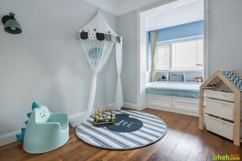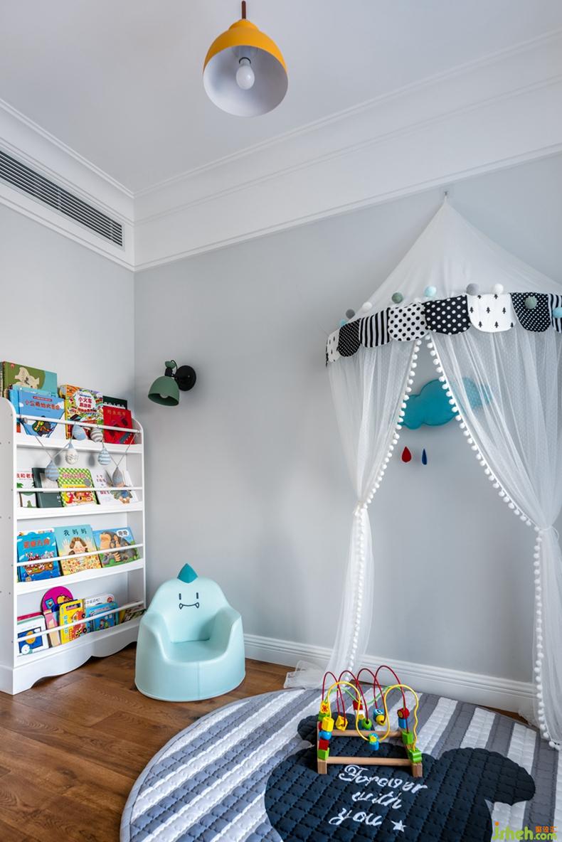 二樓小孩房利用拓展空間設(shè)計成榻榻米,原房間的空間全部作為小孩的活動空間,自由舒展的空間更能釋放孩子的天性。墻面暖灰打底,以藍(lán)色點綴,俏皮童趣的家具都是他這個年齡段剛好合適的,活潑靈動的背后是精心的考量和推敲!室內(nèi)設(shè)計師