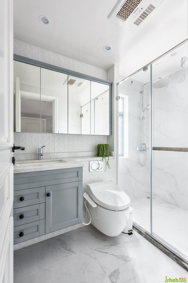 原衛(wèi)生間的采光一般,設(shè)計師選用白色仿石材紋瓷磚,使整個衛(wèi)生間顯得干凈、透亮。