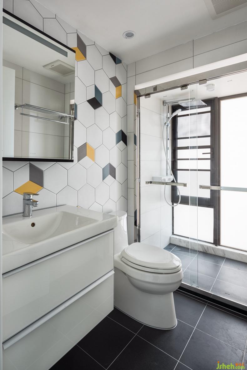 衛(wèi)生間兩款不同的背景磚,讓整個空間的氛圍變得輕松明快。