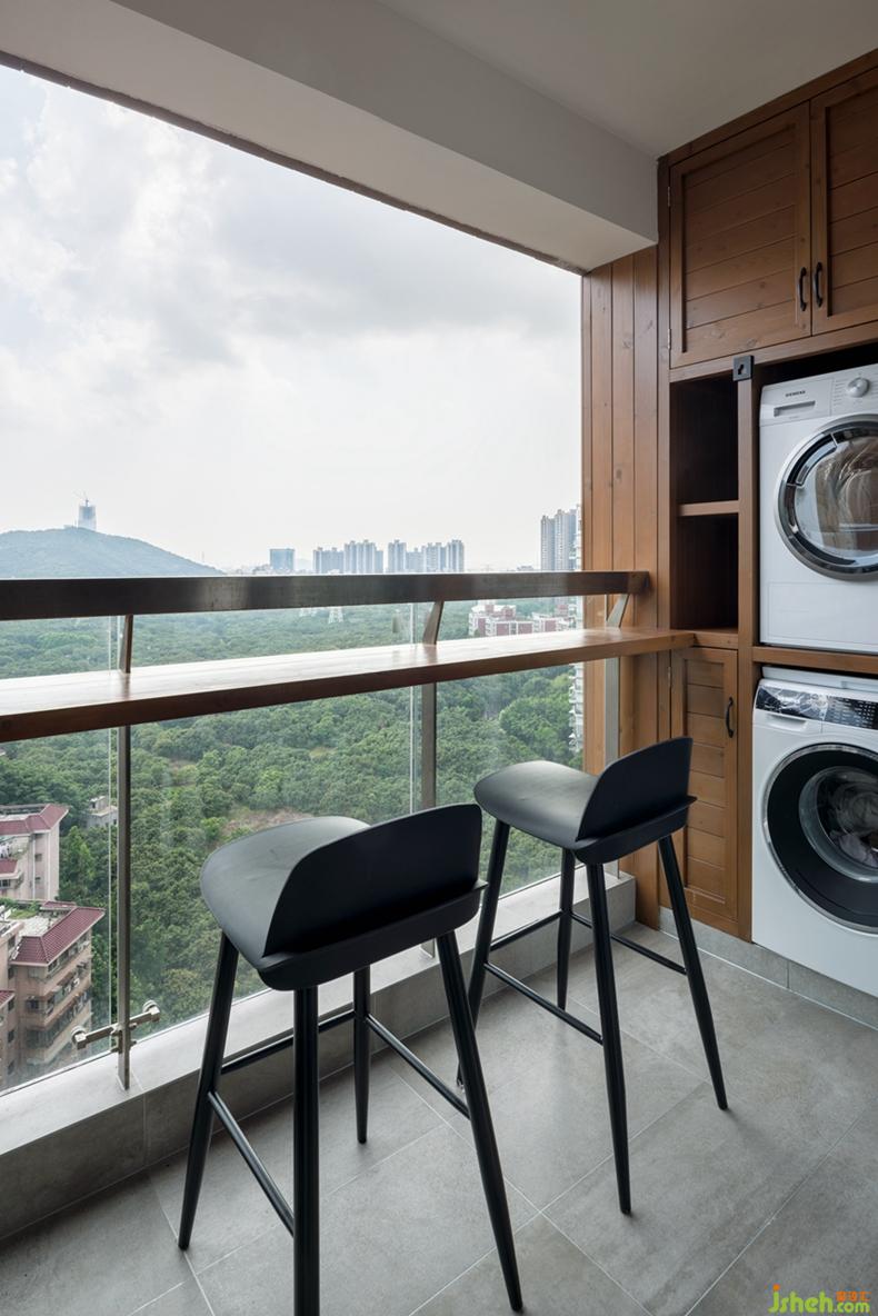 陽臺面向大南山,風景獨好,設計師利用陽臺欄桿設計了一處吧臺,憑欄而坐,不辜負每一處風景。