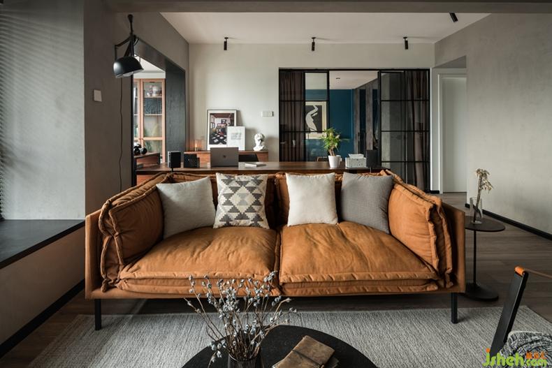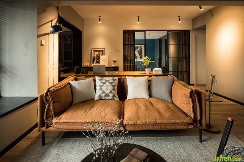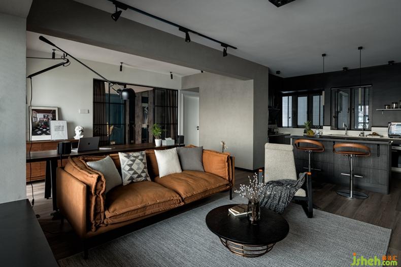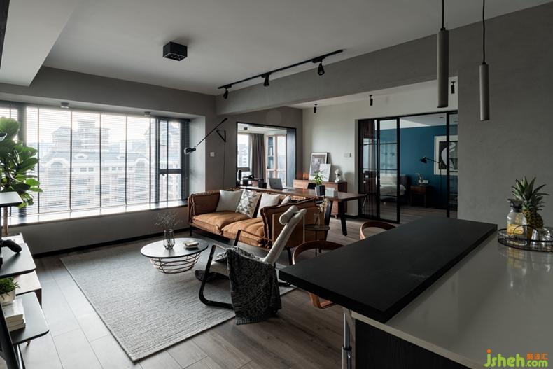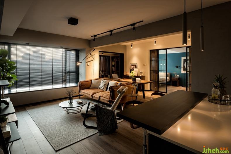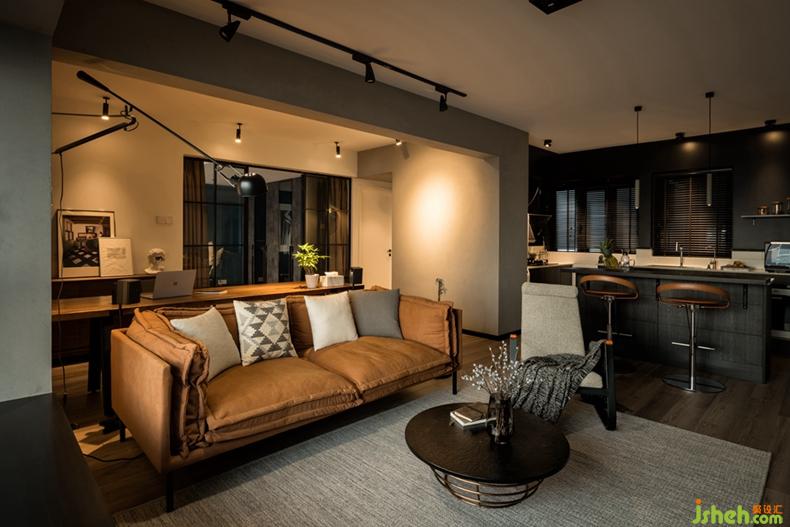 設(shè)計師打破傳統(tǒng)的格局,將書房和廚房全部開放,主臥也僅以窄框玻璃門隔斷,視覺效果層層推進(jìn),在這里,你可以在沙發(fā)上安靜放空,也可以慢慢欣賞一部電影,還可以在吧臺上小酌怡情,帶有復(fù)古情懷的暗調(diào)空間里,讓整個家彌漫著一種慵懶的藝術(shù)氣質(zhì)。室內(nèi)設(shè)計師