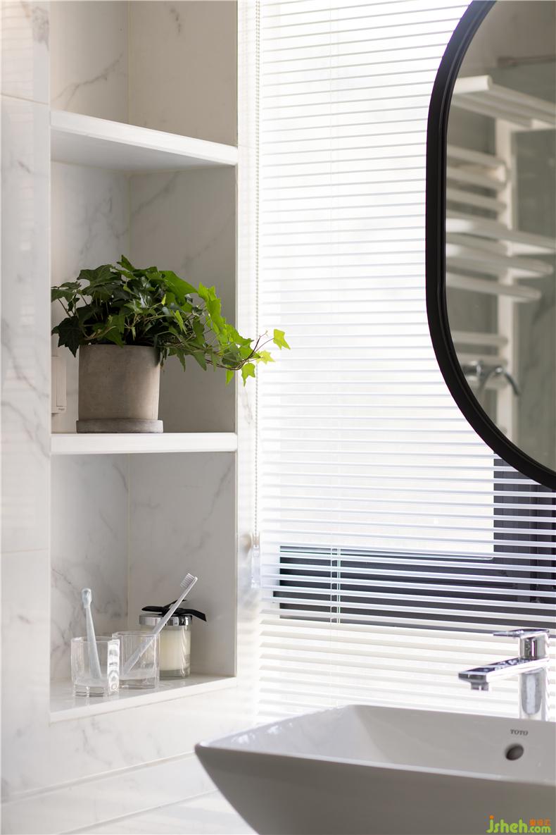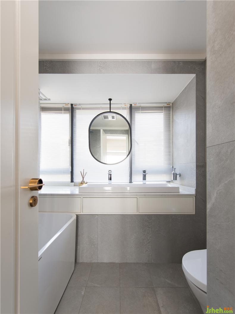 衛(wèi)生間依舊是灰白調(diào),簡單的色彩搭配,使它素凈、明亮且耐看。干凈利落的線條,低調(diào)簡約,透露著悠悠靜謐的的氛圍。