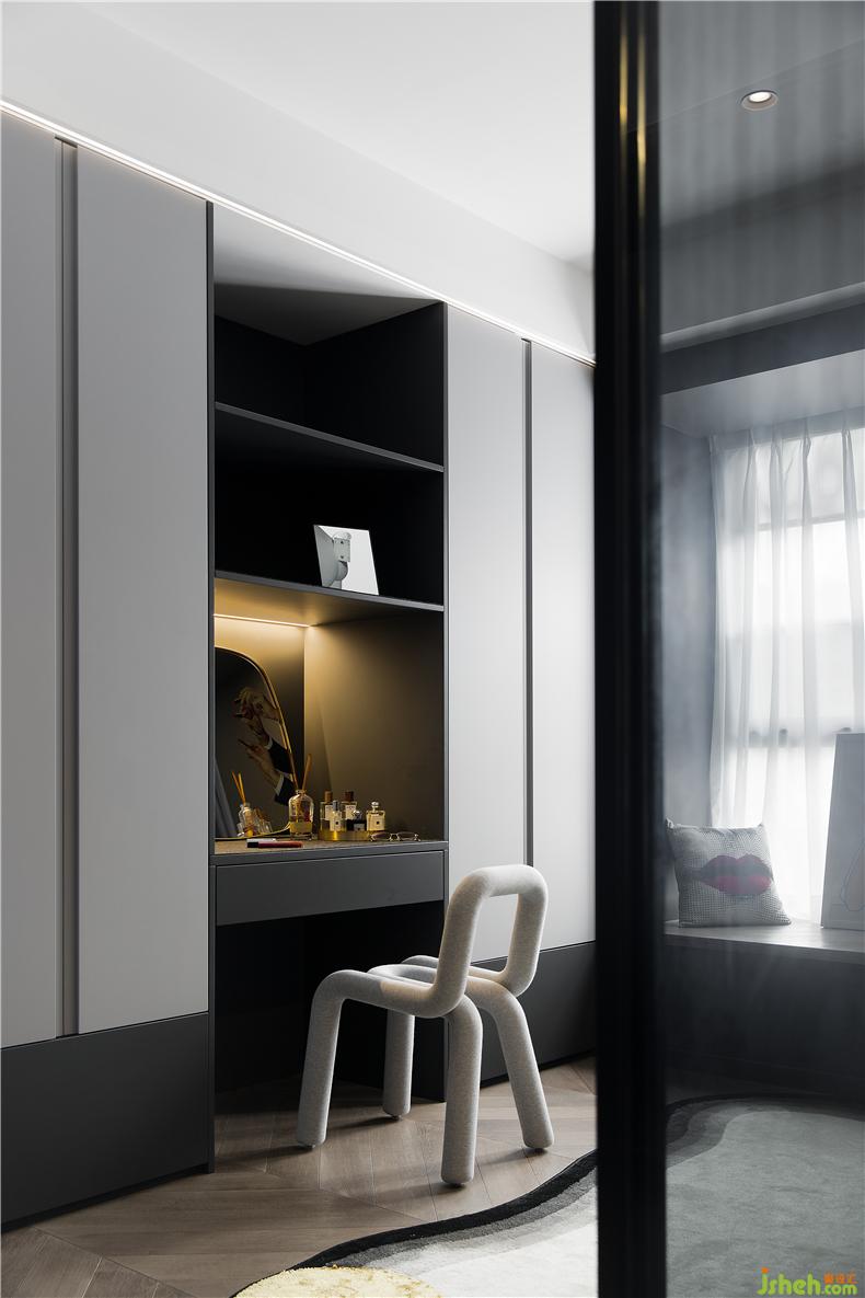 兩間次臥延續(xù)整體的調(diào)性,簡約收納柜體,為生活減壓,讓一切變得秩序井然。色彩被撫慰至純凈,室內(nèi)設(shè)計(jì)師線條被簡化至安穩(wěn),線條被色調(diào)影響出了感情,靜靜地釋放著溫柔沉靜的氣韻。
